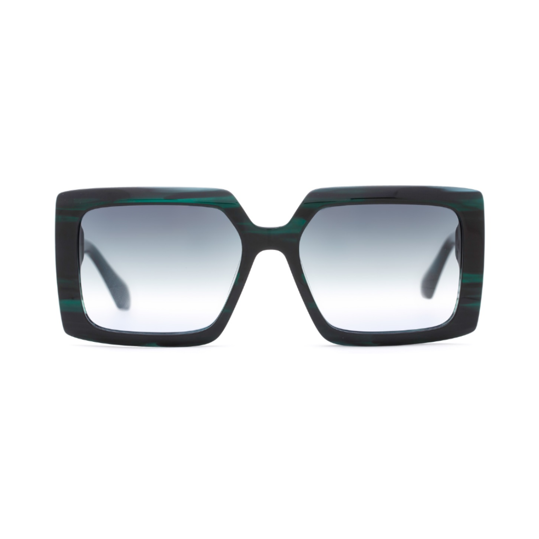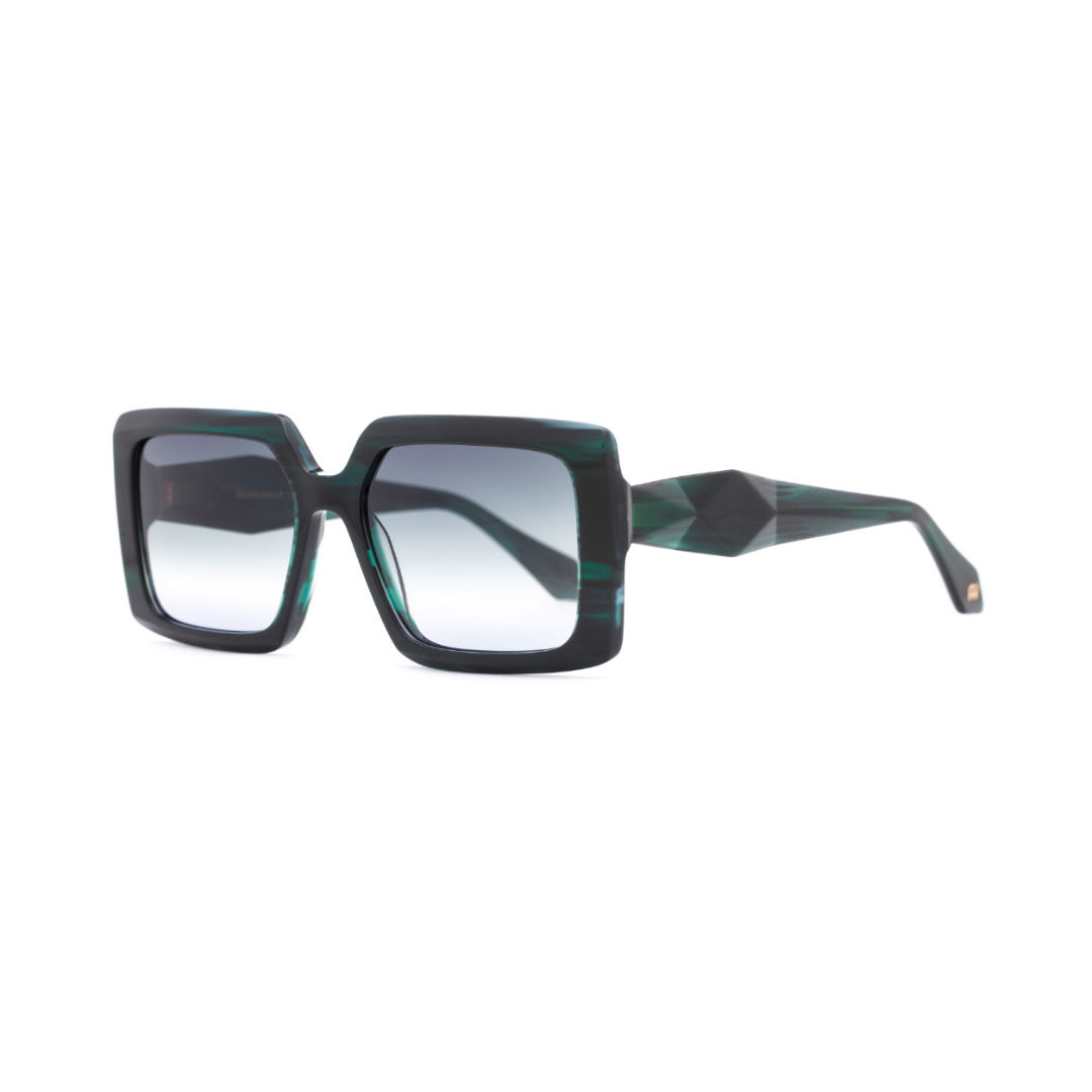 Óculos de Sol da coleção da Ana Hickmann em acetato apresenta um design geométrico com frente retangular intrigante e ousada. As hastes apresentam cortes distintos e geométricos, criando cativantes interações de formas e espaços negativos.