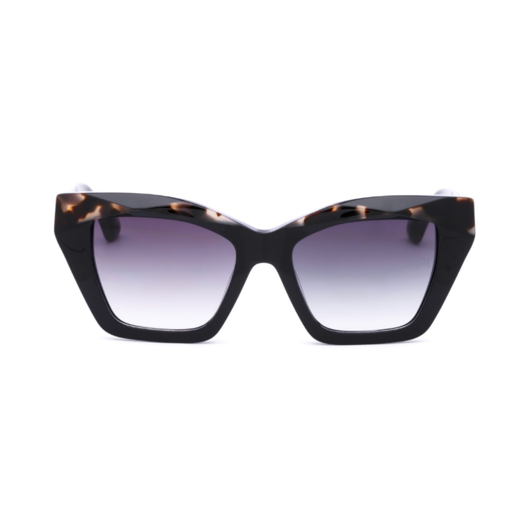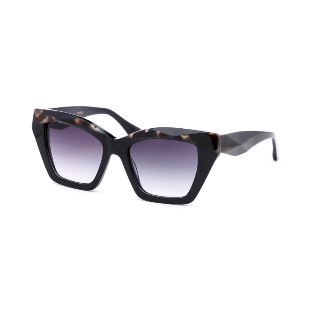 Óculos de sol estilo olho de gato feitos de acetato premium, apresentando um design tridimensional que cria um efeito facetado, adicionando profundidade e dinamismo à armação. O formato esculpido realça o apelo ousado e sofisticado dos óculos, tornando-os um acessório marcante que combina modernidade com elegância atemporal.
