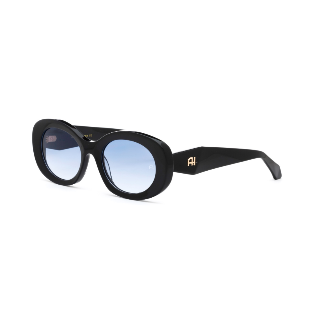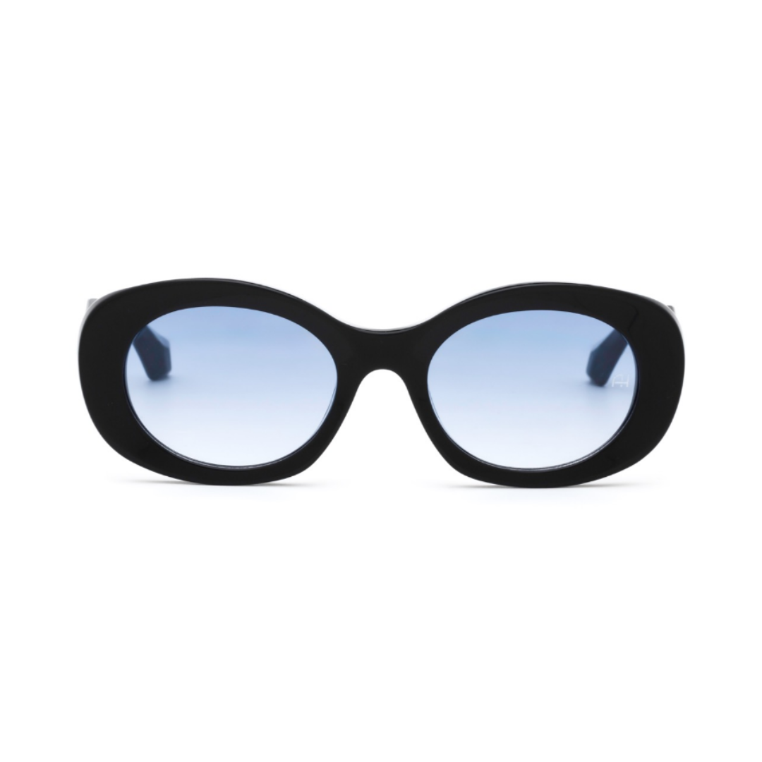 Óculos de sol feitos de acetato com um formato moderno oval, oferecendo uma estética elegante e minimalista mas sempre com um toque luxuoso e sofisticado ao design.