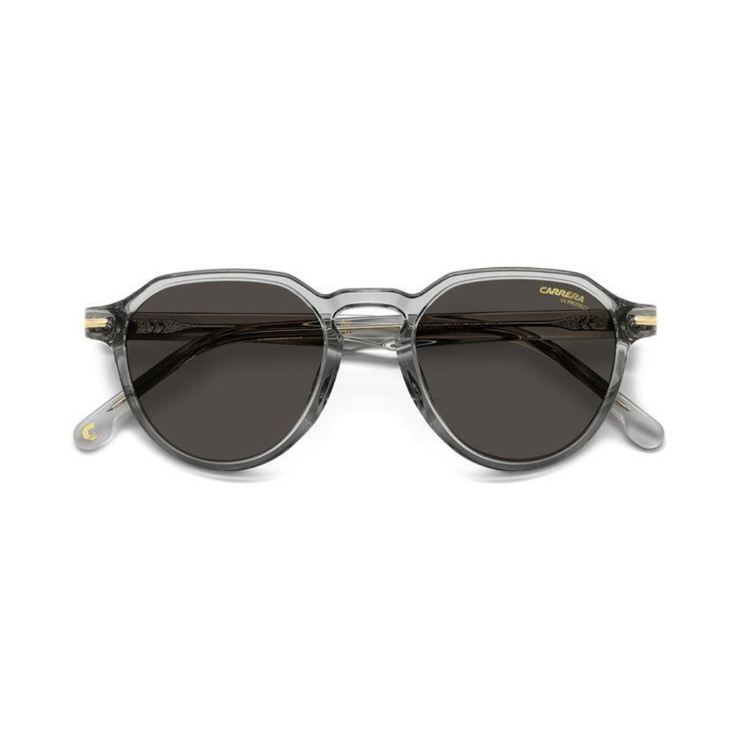 A estética vintage e a qualidade genuína e palpável da Carrera distinguem estes óculos de sol. As armações favorecem todos os rostos graças ao formato pantos versátil e à ponte em forma de fechadura, concebida para acomodar também lentes de prescrição. Os detalhes que celebram a marca são abundantes: o inserto metálico com o logótipo "C" esculpido e as hastes em forma de barbatana, estas últimas disponíveis numa versão multicamadas ou transparentes com núcleo visível.